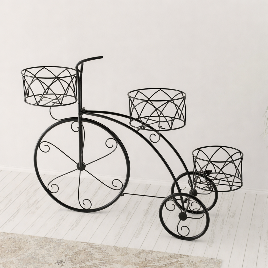 Wooden Twist Garden Cart Planter Stand Tricycle Plant Holder – Ideal for Home, Garden, Patio